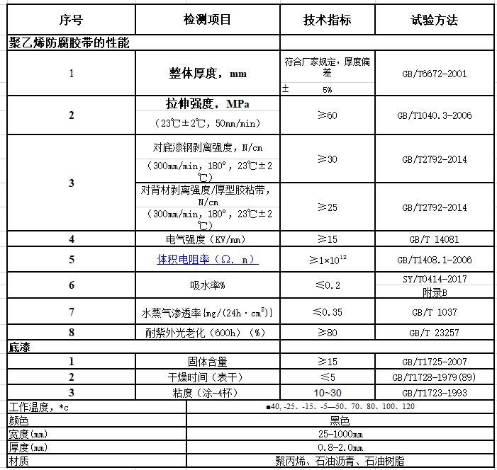 該產(chǎn)品基材為獨(dú)特的改性聚丙烯增強(qiáng)編織纖維布,采用丁基橡膠改性瀝青做防腐膠層。其基材是纖維結(jié)構(gòu)可有效地抵抗由于土壤應(yīng)力而產(chǎn)生的蠕變破壞,經(jīng)老化試驗(yàn)檢測(cè)證明其耐蝕時(shí)間達(dá)30年以上,各項(xiàng)檢測(cè)指標(biāo)符合SY/T 0414-2017標(biāo)準(zhǔn)要求, 完全達(dá)到ANSI/AWWAC20W00和NACEMR0274-95指標(biāo)。是管道冷防腐施工膠帶中的優(yōu)先選擇,也是防腐經(jīng)濟(jì)的選擇。